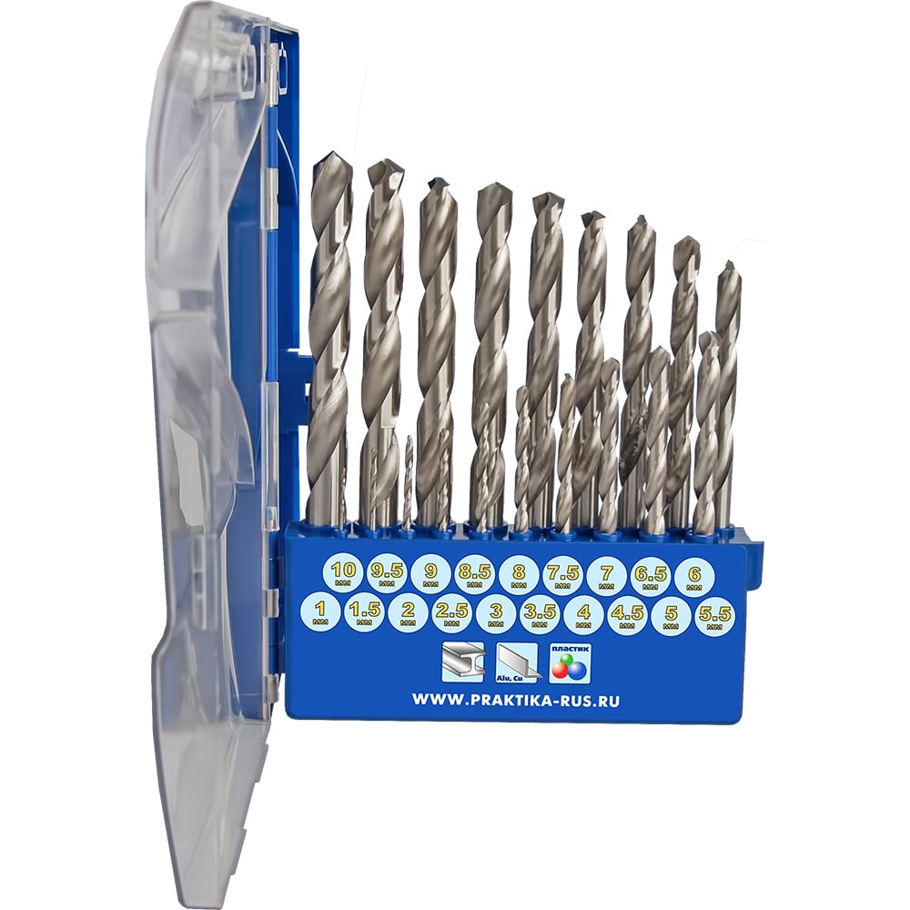 Набор сверл по металлу Профи (19 шт; 1-10 мм) ПРАКТИКА 640-308