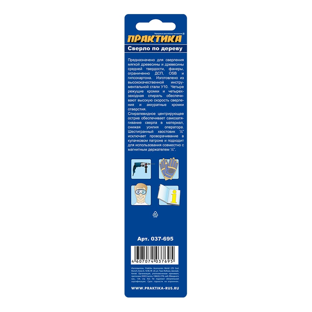 Сверло по дереву X-тип (25x165 мм; в блистере) ПРАКТИКА 037-695