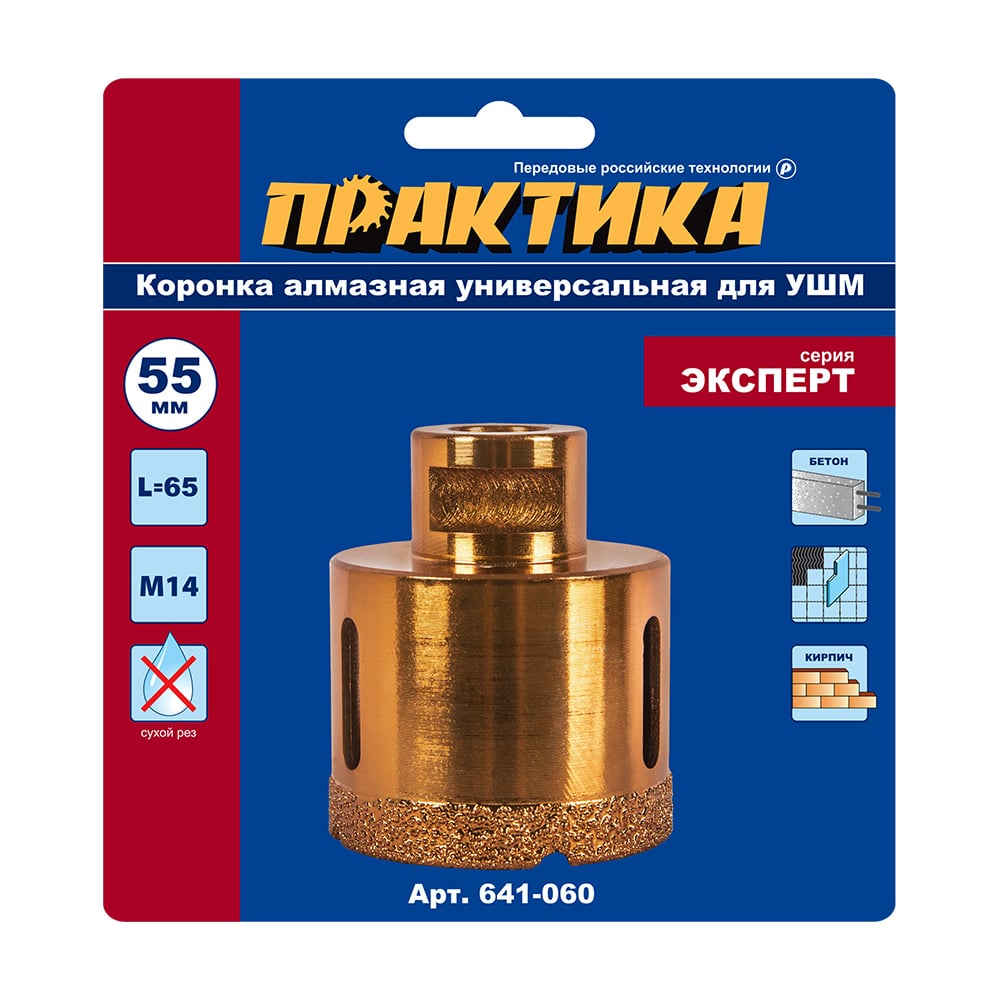 Коронка алмазная универсальная (55 мм; М14) для УШМ ПРАКТИКА 641-060