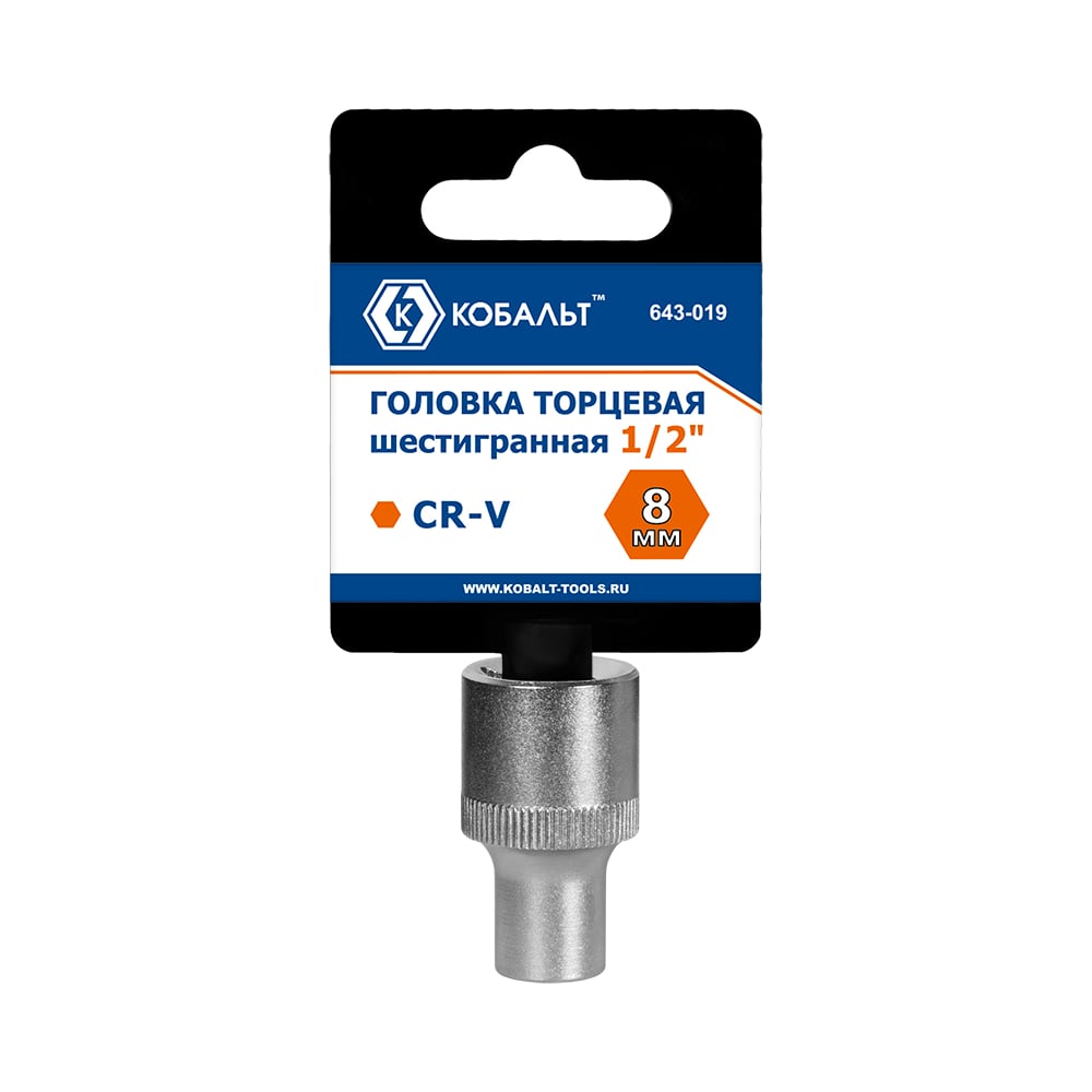 Торцевая головка КОБАЛЬТ 1/2, 8мм, Cr-V 643-019
