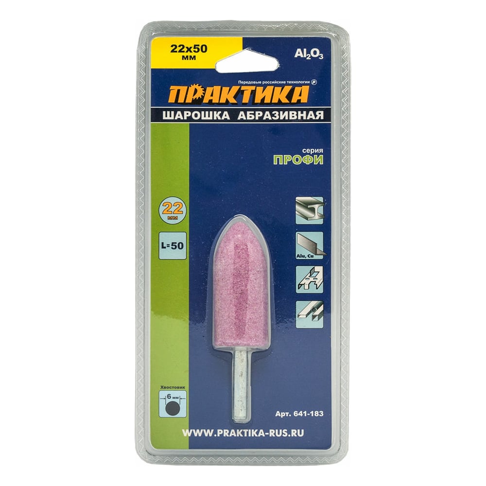 Шарошка абразивная (22х50 мм; хвостовик 6 мм) ПРАКТИКА 641-183