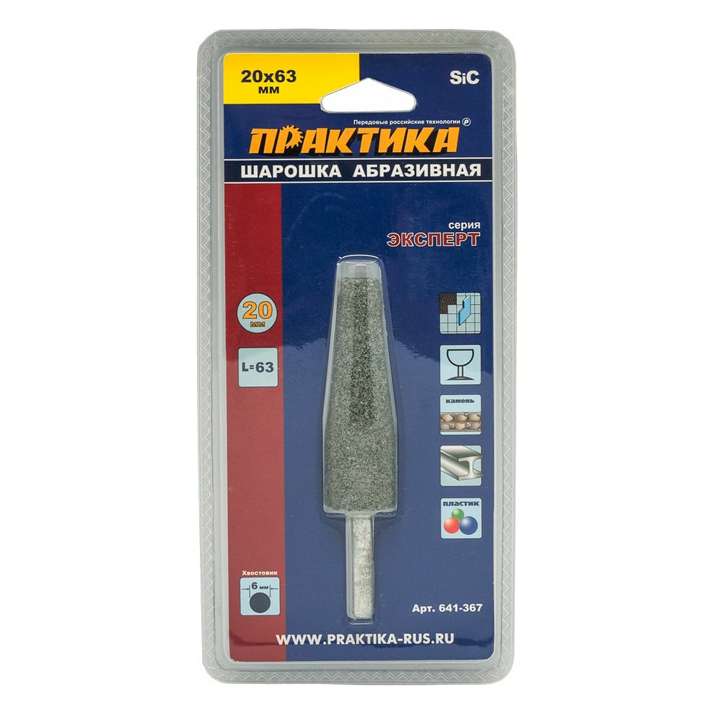 Шарошка абразивная (20х63 мм; хвостовик 6 мм) ПРАКТИКА 641-367