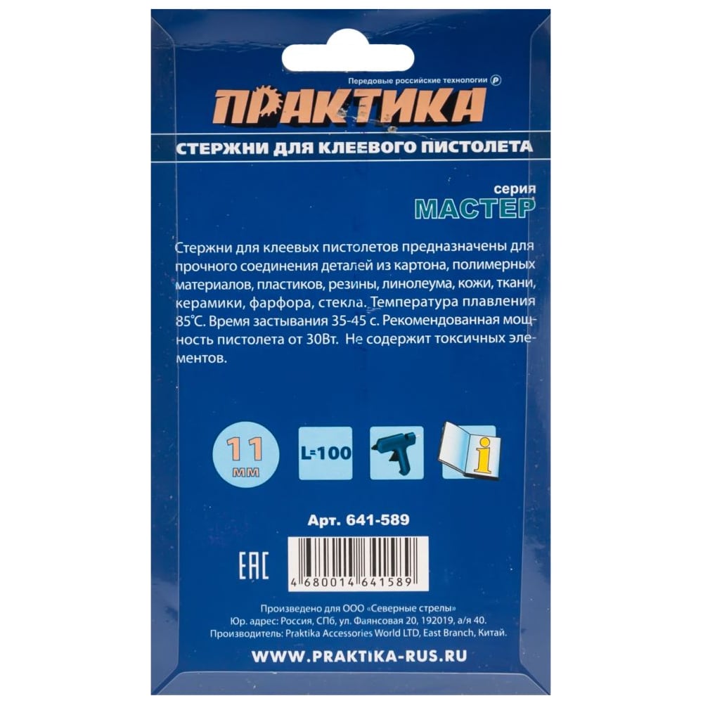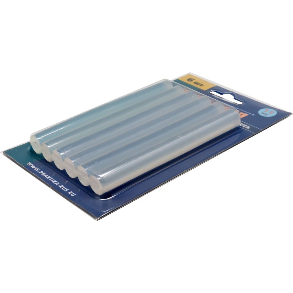 Клей белый, прозрачный (6 шт; 11х100 мм) для клеевого пистолета ПРАКТИКА 641-589