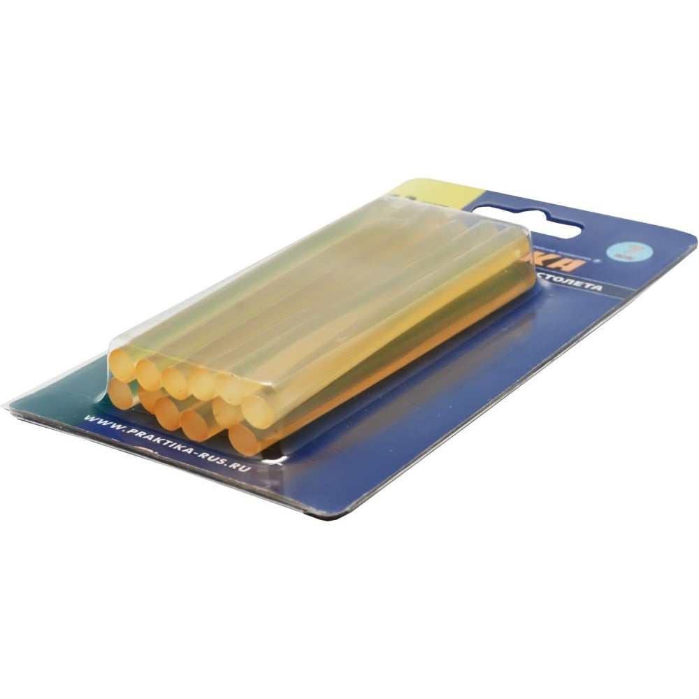 Клей желтый, прозрачный (12 шт; 7х100 мм) для клеевого пистолета ПРАКТИКА 641-626