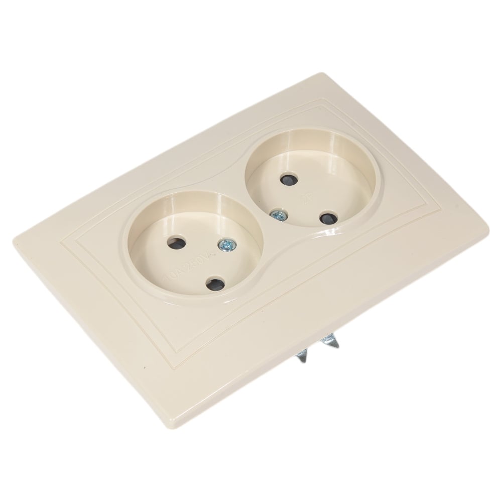 Двойная розетка с защитными шторками, слоновая кость 2П 10А 250В TDM ELECTRIC Таймыр SQ1814-0117