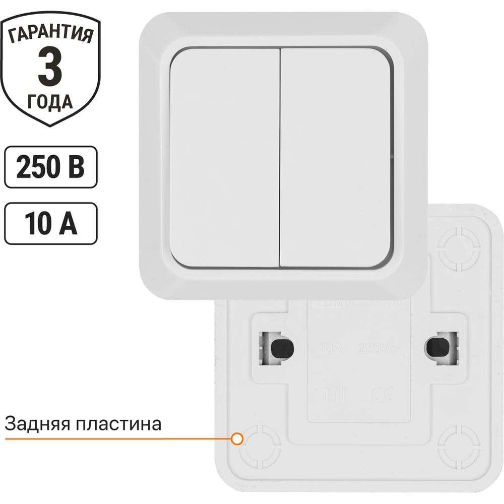 Выключатель TDM ELECTRIC 2-кл. открытой установки IP20 10А, белый серия "Ладога" SQ1801-0003