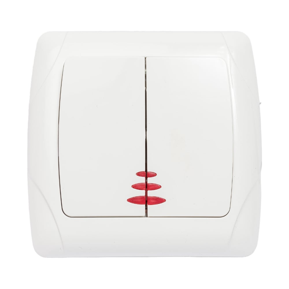Двухклавишный выключатель TDM ELECTRIC с подсветкой, белый Онега SQ1805-0005