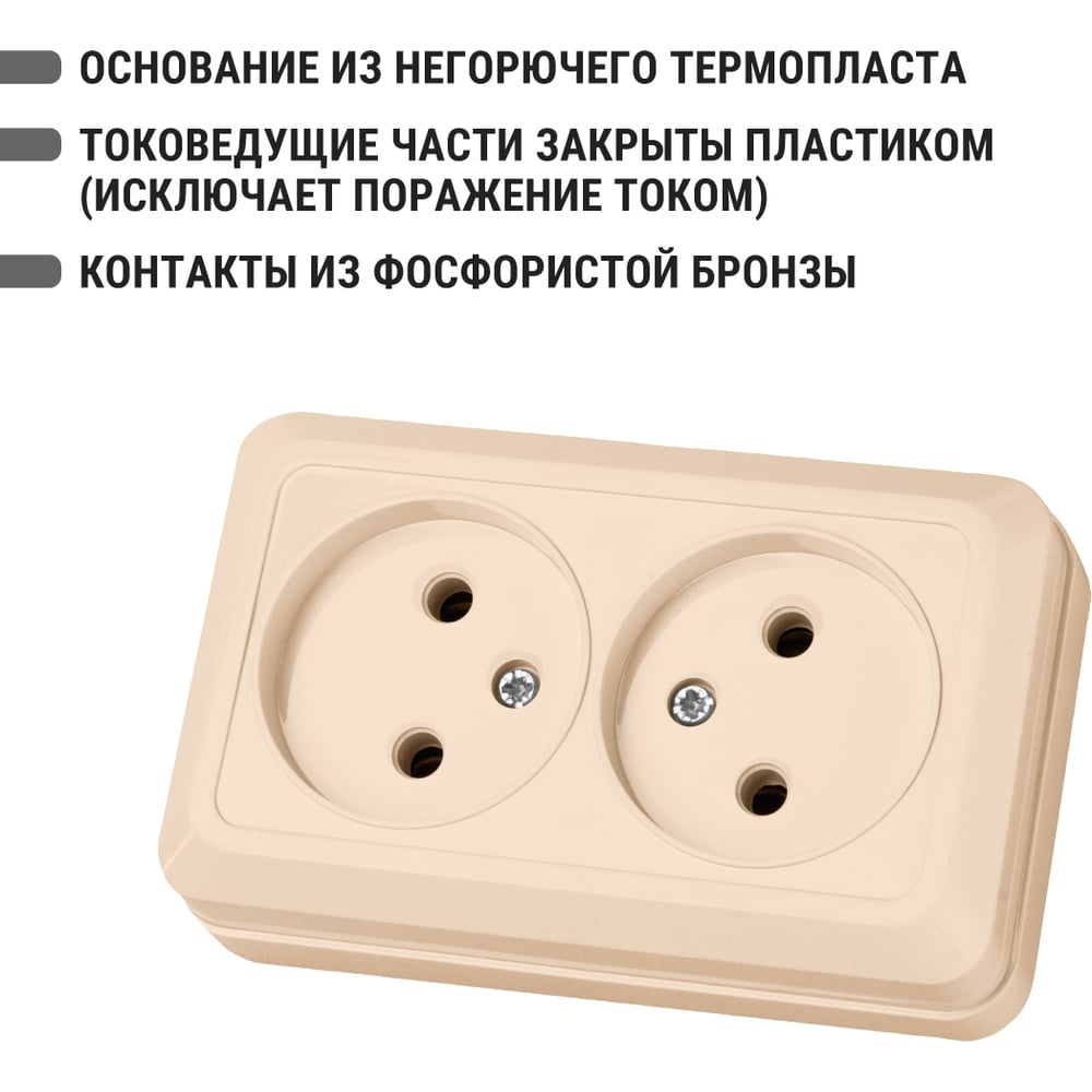 Двойная розетка открытой установки 2П IP20 10А, слоновая кость TDM ELECTRIC Ладога SQ1801-0018