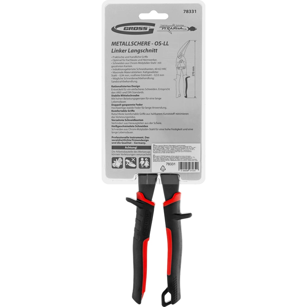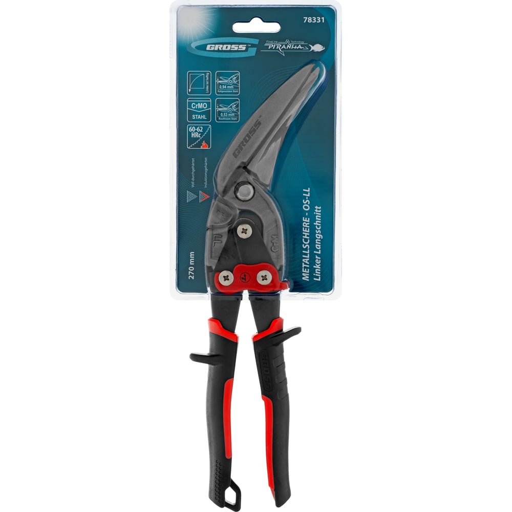 Ножницы по металлу GROSS PIRANHA 270 мм, прямой и левый проходной рез, сталь - СrMo, двухкомп. рук-ки 78331