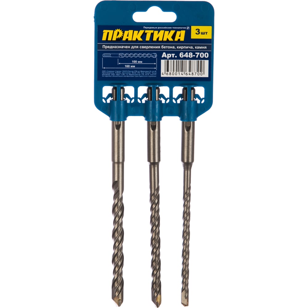 Набор буров Мастер (3 шт; 6, 8, 10 х 160 мм; SDS-plus) ПРАКТИКА 648-700