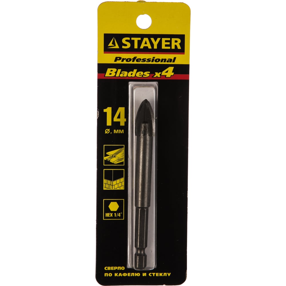 Сверло "PROFI" 14мм по керамике и стеклу, с четырьмя режущими лезвиями STAYER 2985-14_z*01