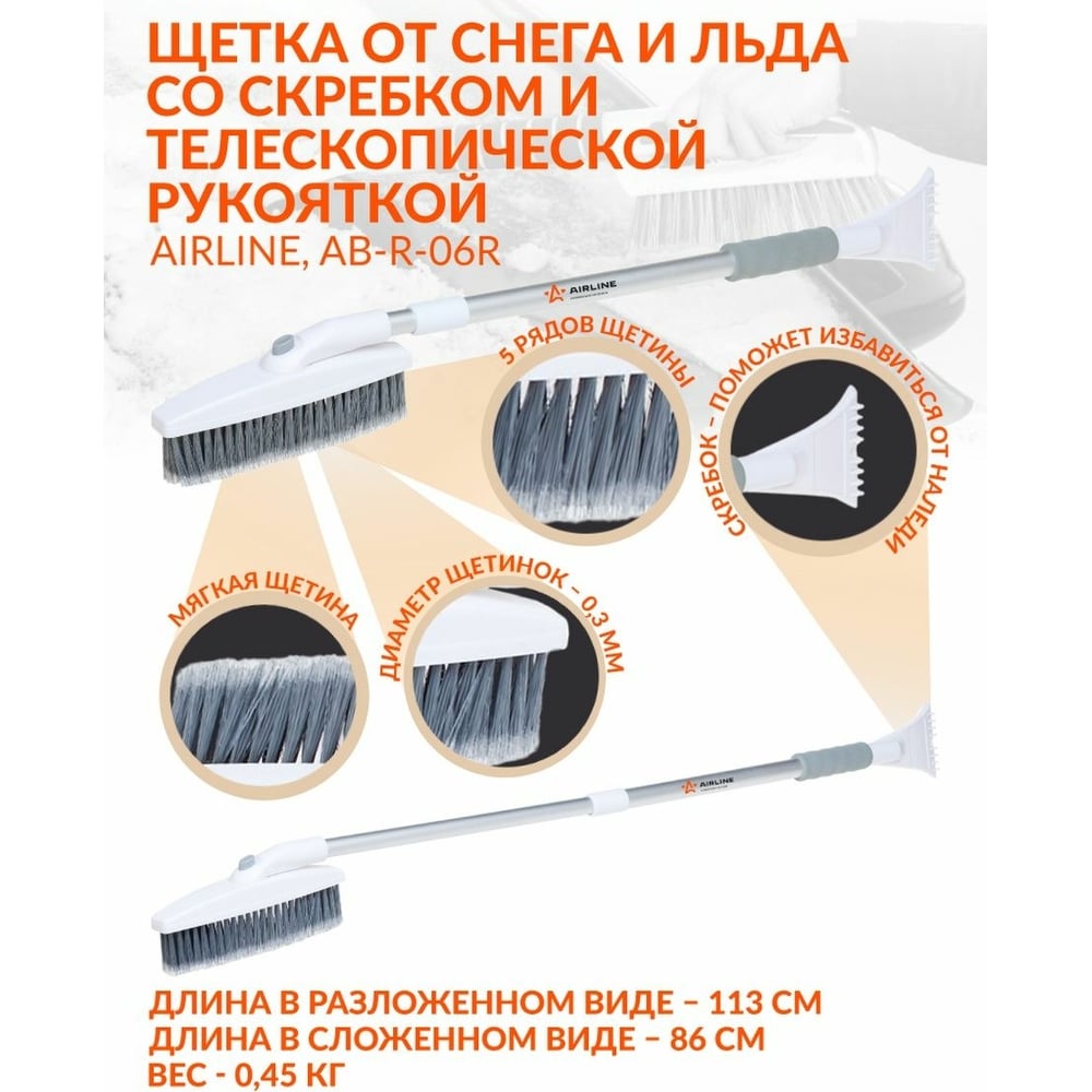 Щетка от снега + скребок Airline распушён.щетина, поворотная голова, телескоп.рукоятка 86-123см AB-R-06R