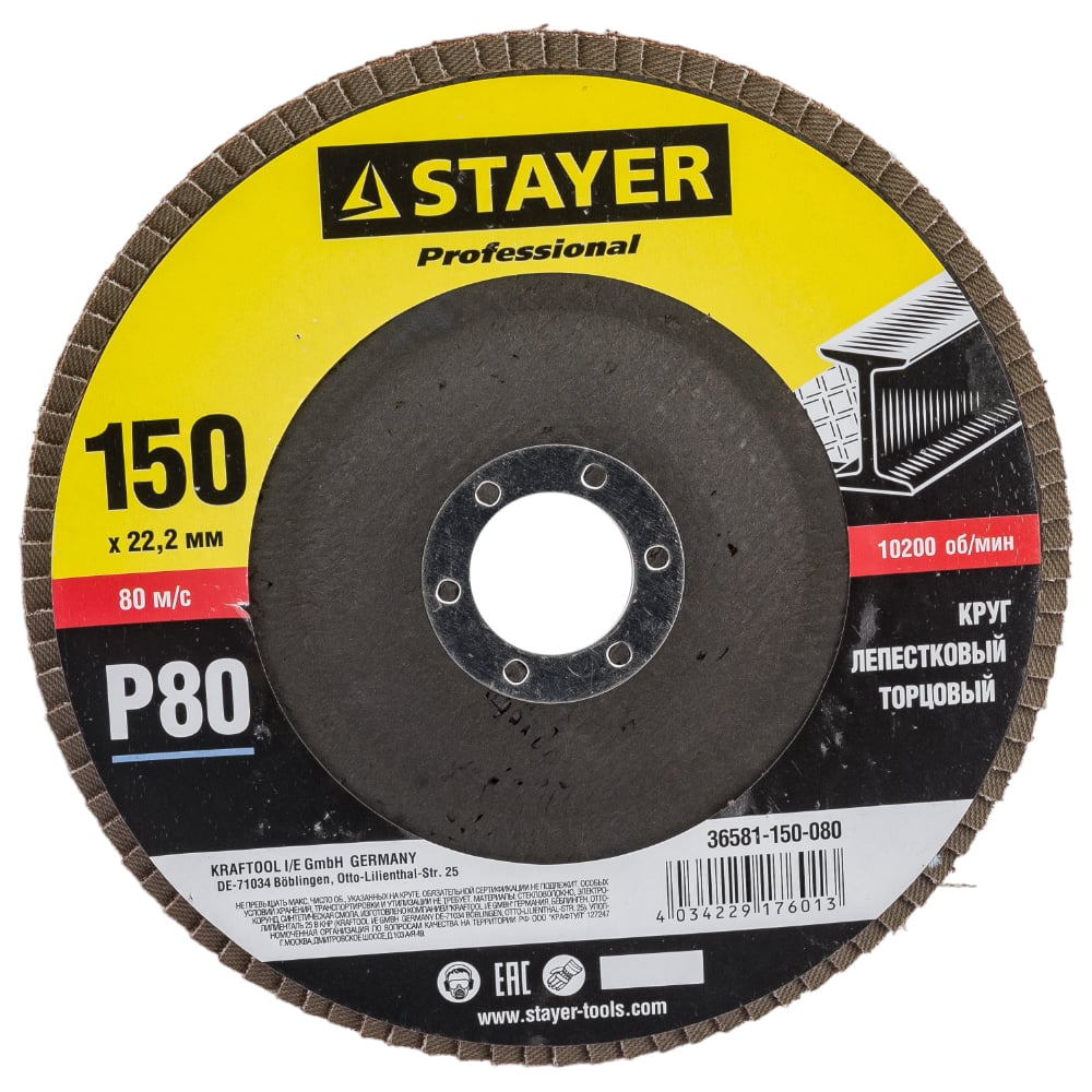 Лепестковый торцевой шлифовальный круг STAYER PROFI 36581-150-080