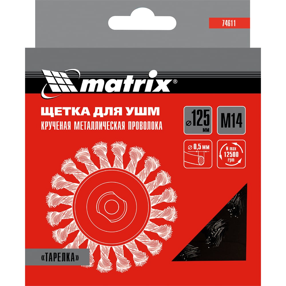 Щетка тарелка для УШМ (125 мм; М14; крученая проволока 0.5 мм) MATRIX 74611