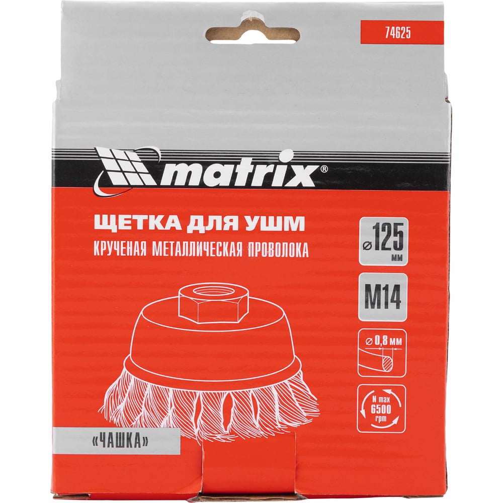 Щетка чашечная для УШМ (125 мм; М14; крученая проволока 0.8 мм) MATRIX 74625