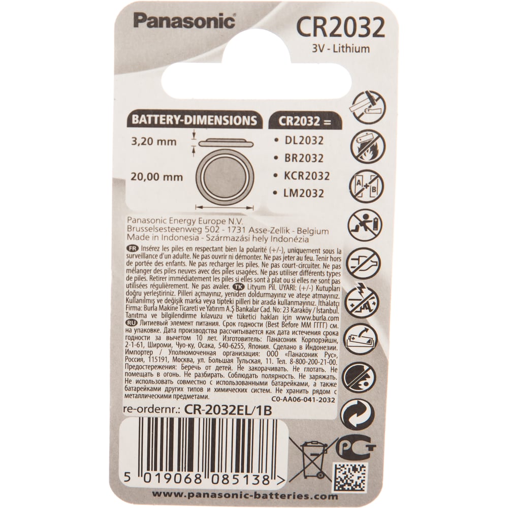 Батарейка Panasonic CR2032 3В бл/1 литиевая дисковая 5019068085138
