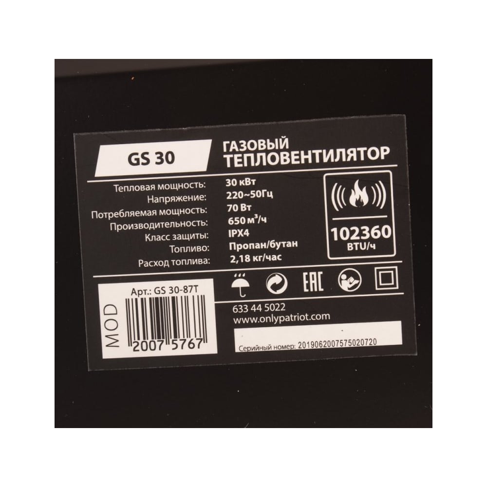 | Топливо | пропан / бутан |