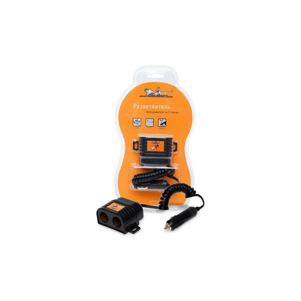 Прикуриватель-разветвитель на 2 гнезда с витым шнуром Airline ASP-2-05