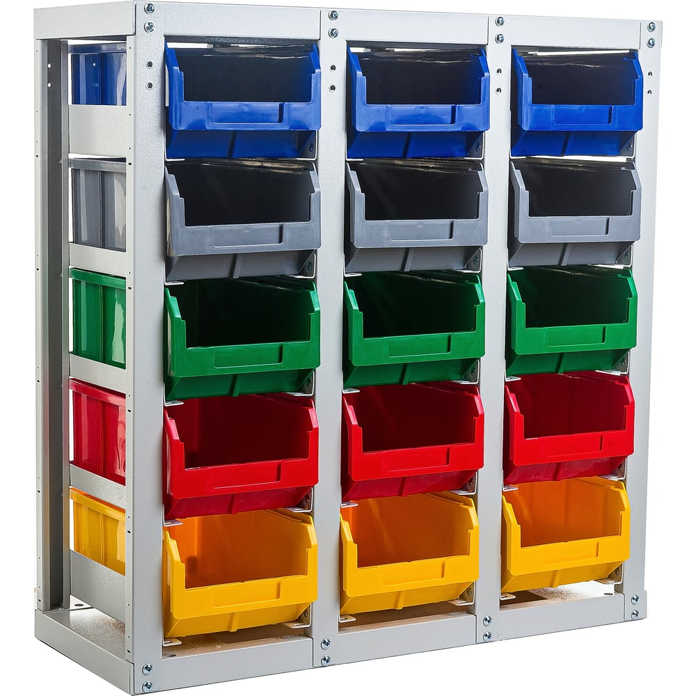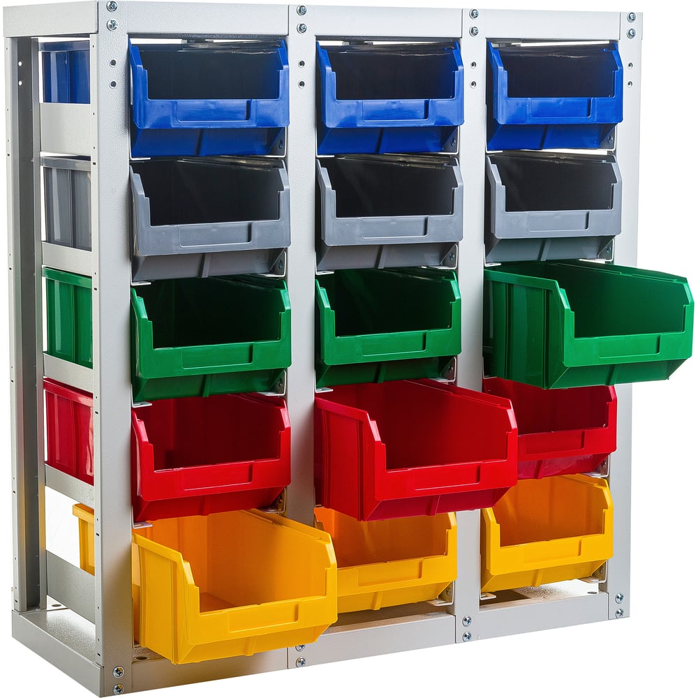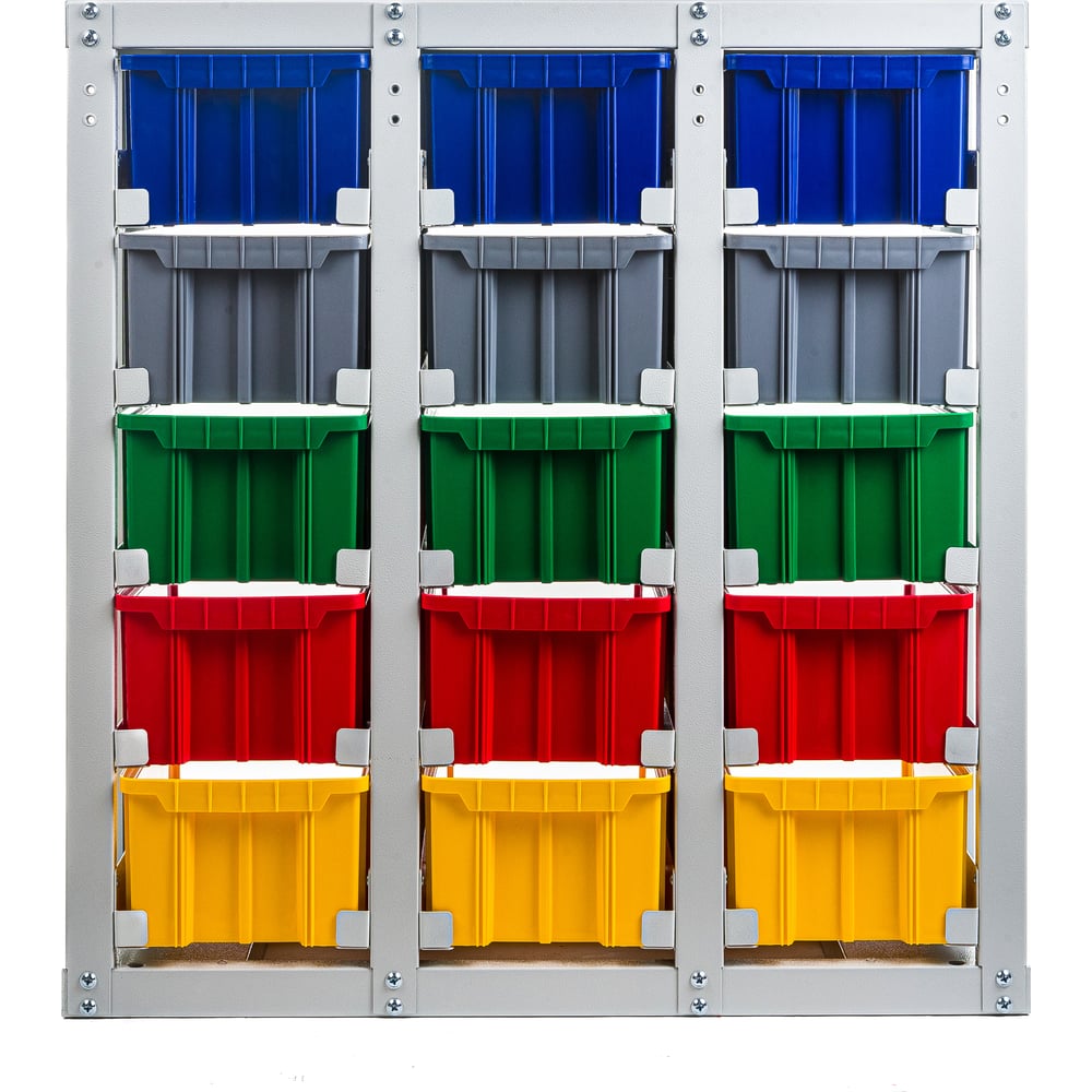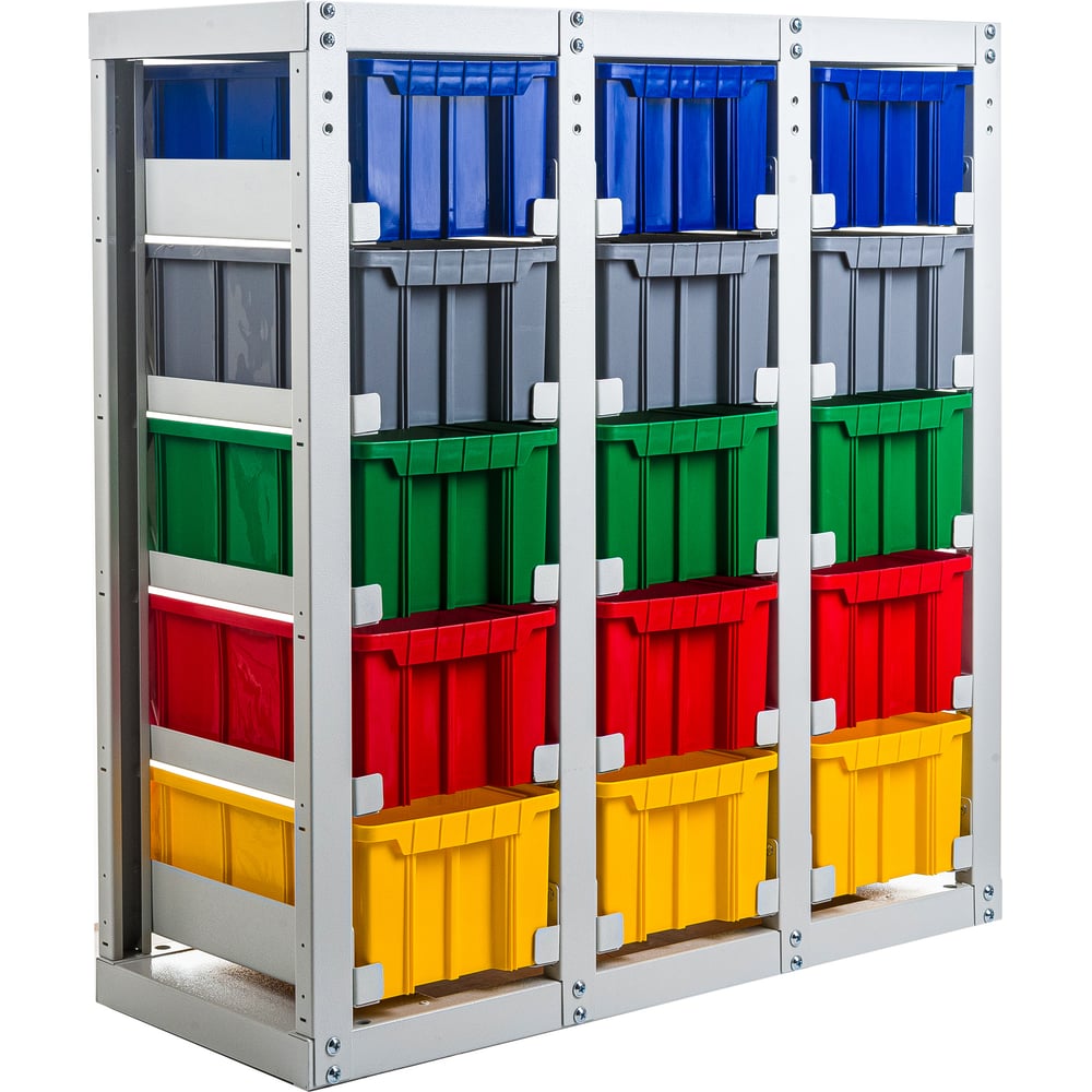 Стеллаж с направляющими Стелла-техник стационарный, односторонний, 15 ячеек с ящиками, V3-15