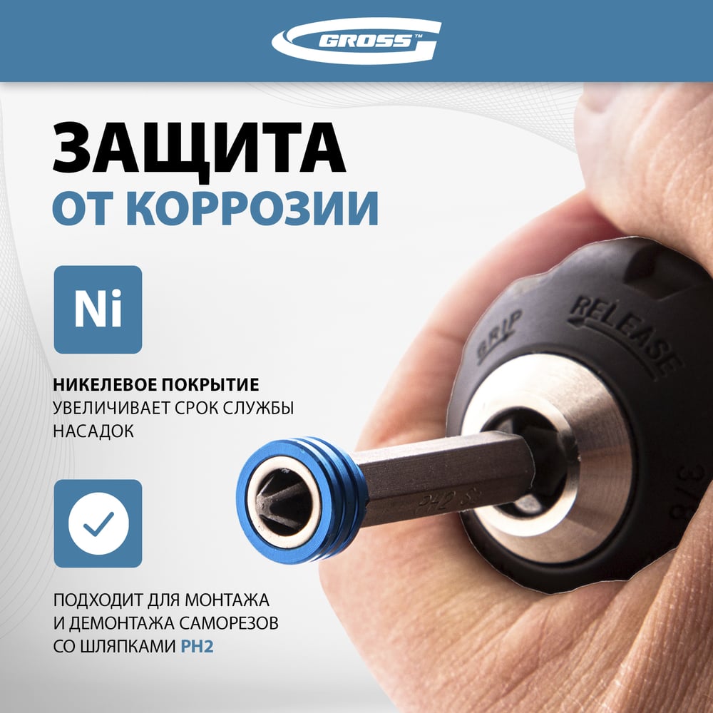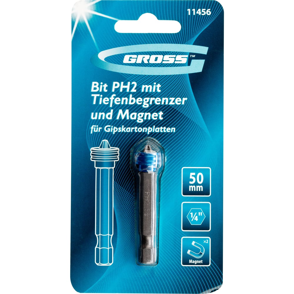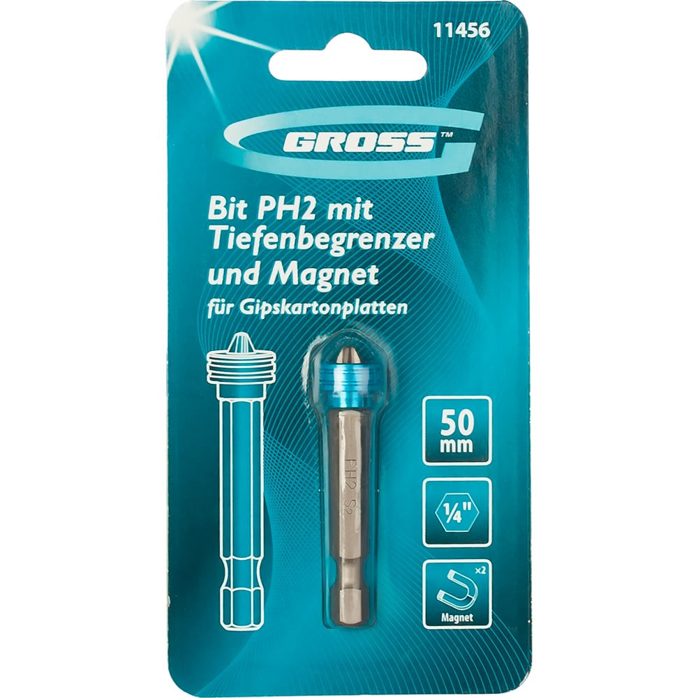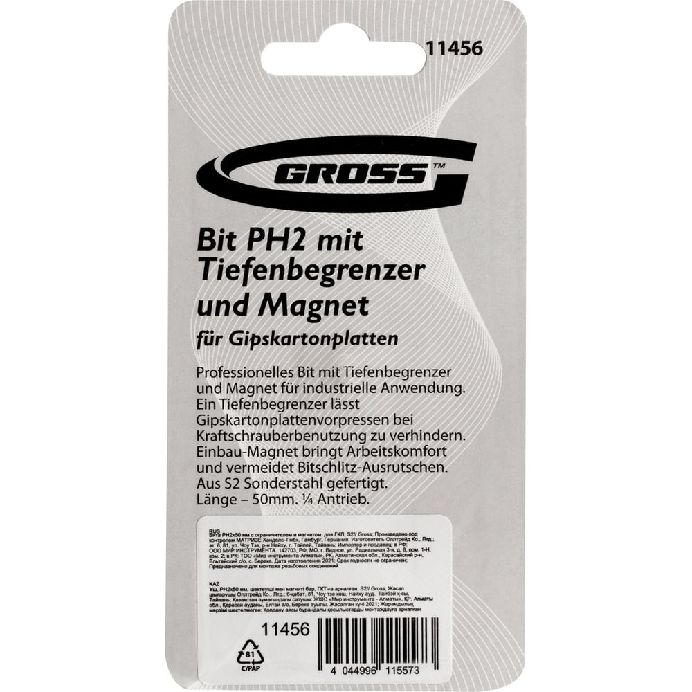 Бита с ограничителем и магнитом (PH2x50 мм, сталь S2) Gross 11456