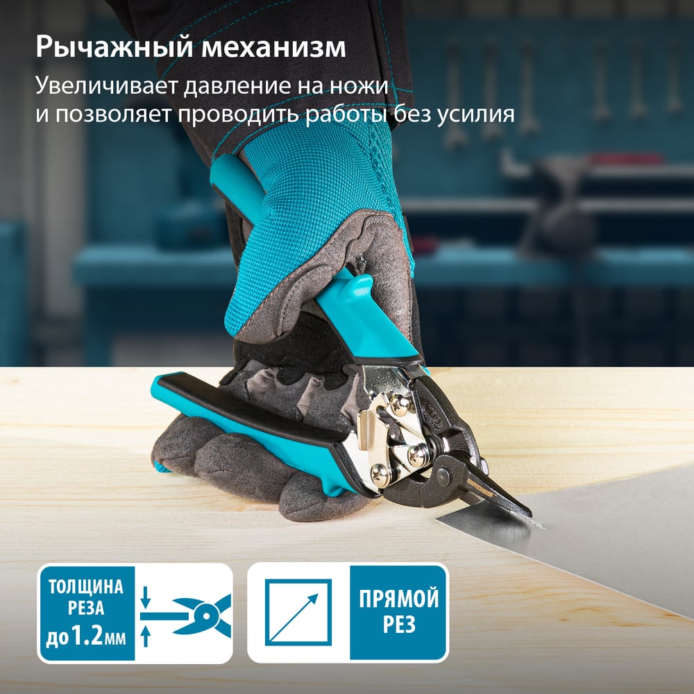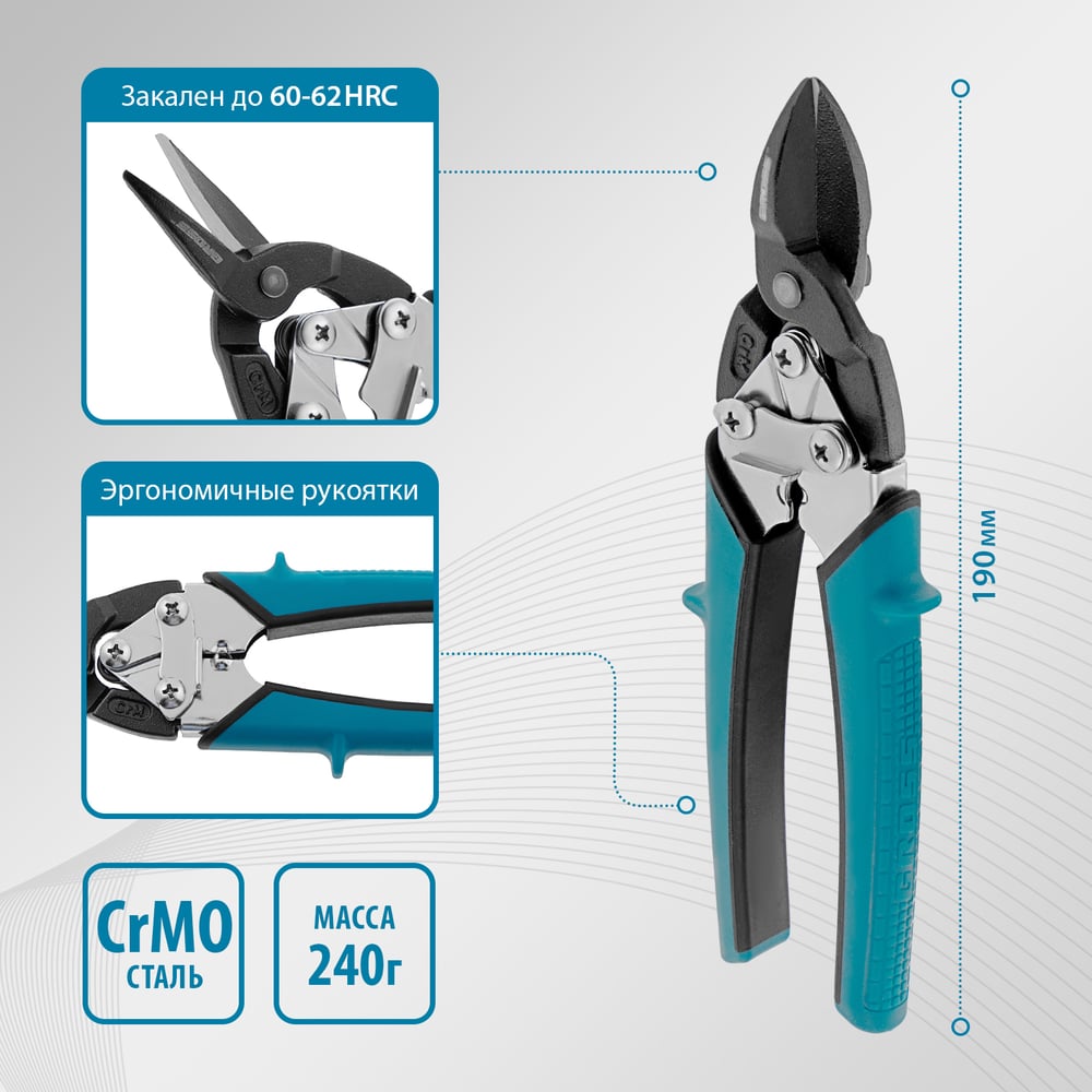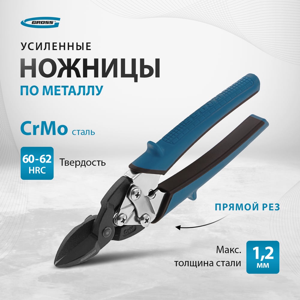 Ножницы по металлу GROSS PIRANHA 190 мм прямой рез, сталь - СrM, двухкомпонентные рукоятки 78357