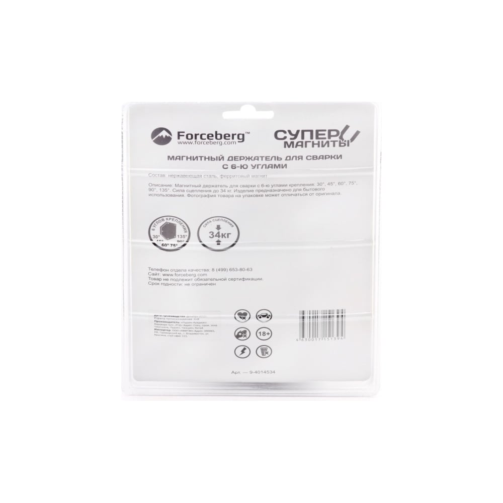 Магнитный держатель для сварки Forceberg для 6-ти углов. Максимальное усилие 35 кг, шт 9-4014534