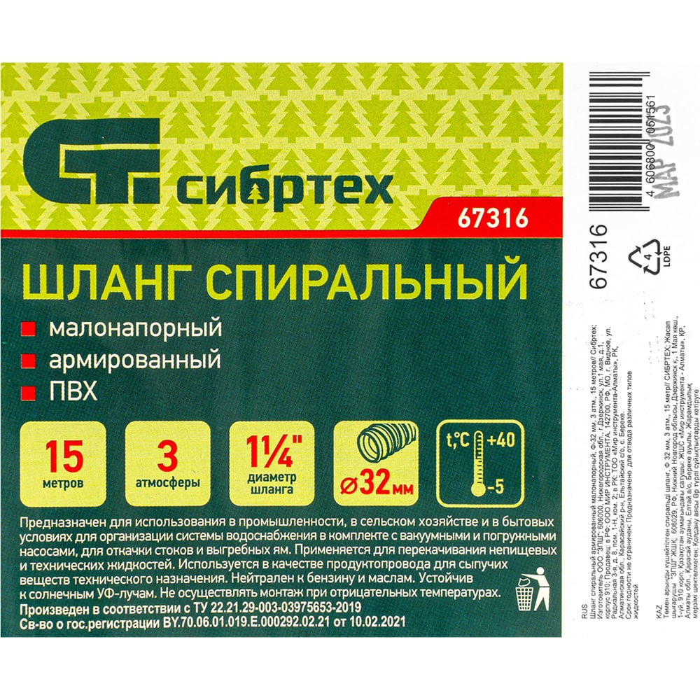 Шланг спиральный армированный малонапорный (32 мм; 15 м) Сибртех 67316
