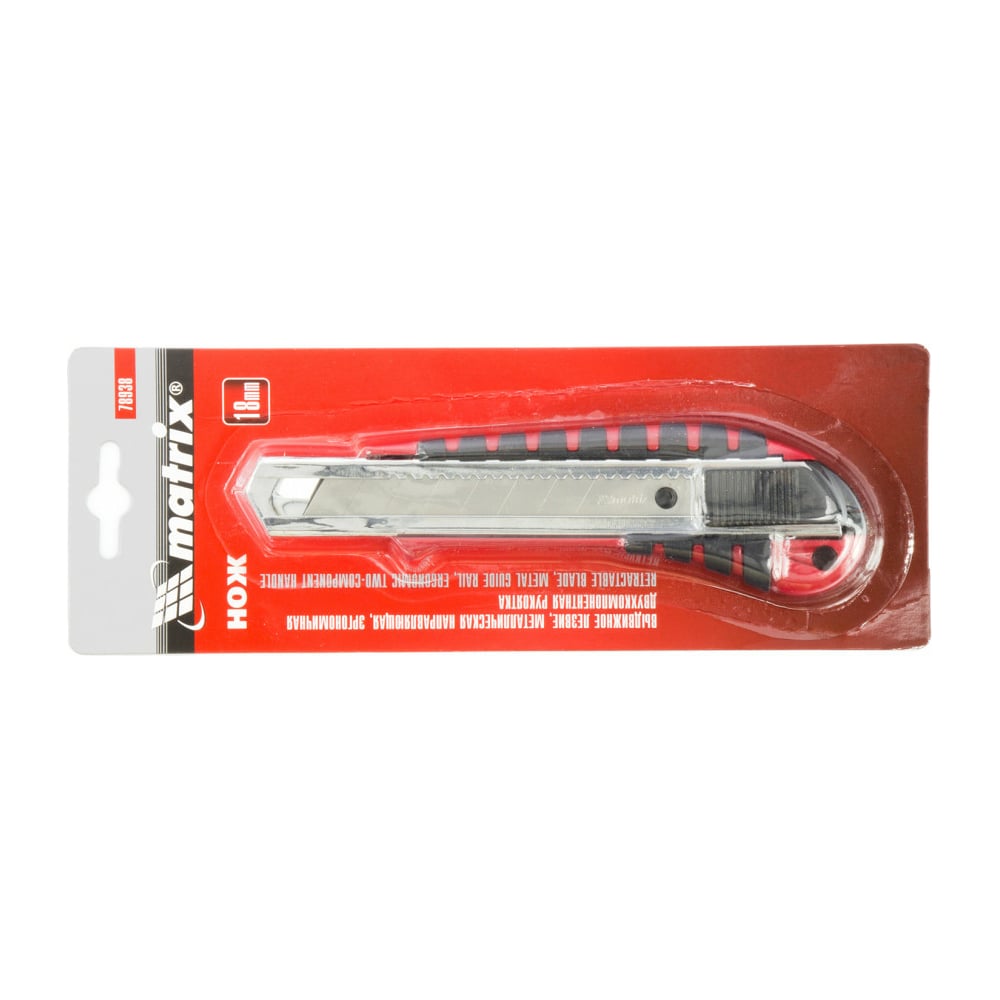 Нож MATRIX, 18 мм выдвижное лезвие металлическая направляющая эргоном. двухкомпонентная рукоятка// 78938