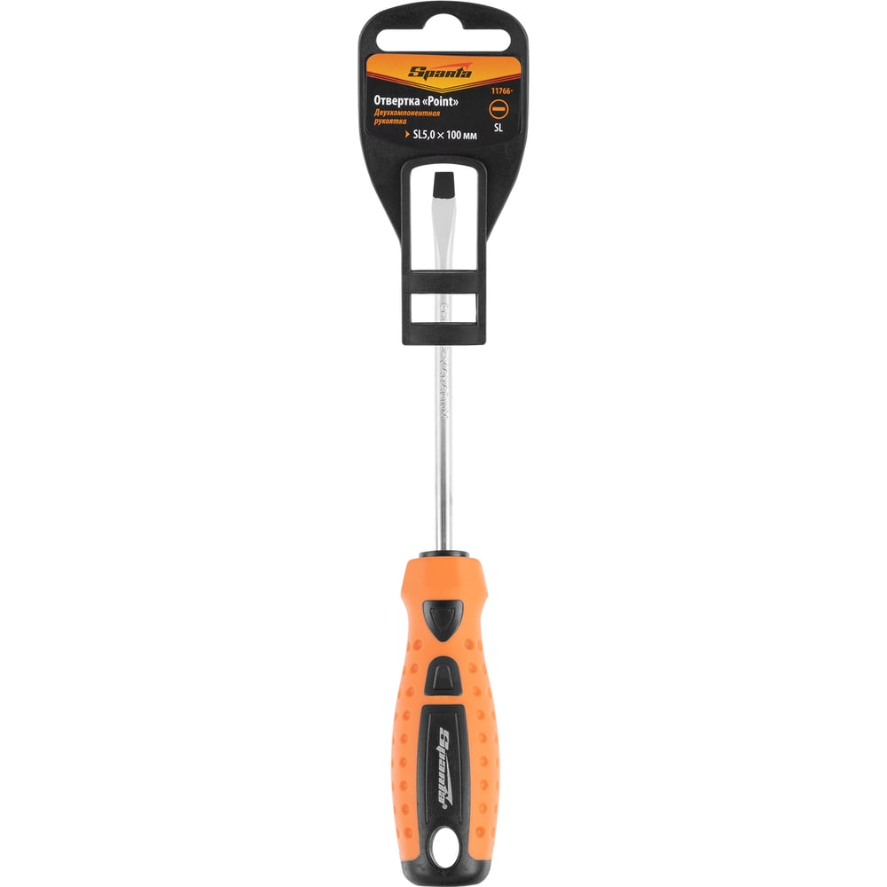Отвертка SPARTA "Point", SL5,0x100 мм, CrV, 2-х компонентная рукоятка// 11766