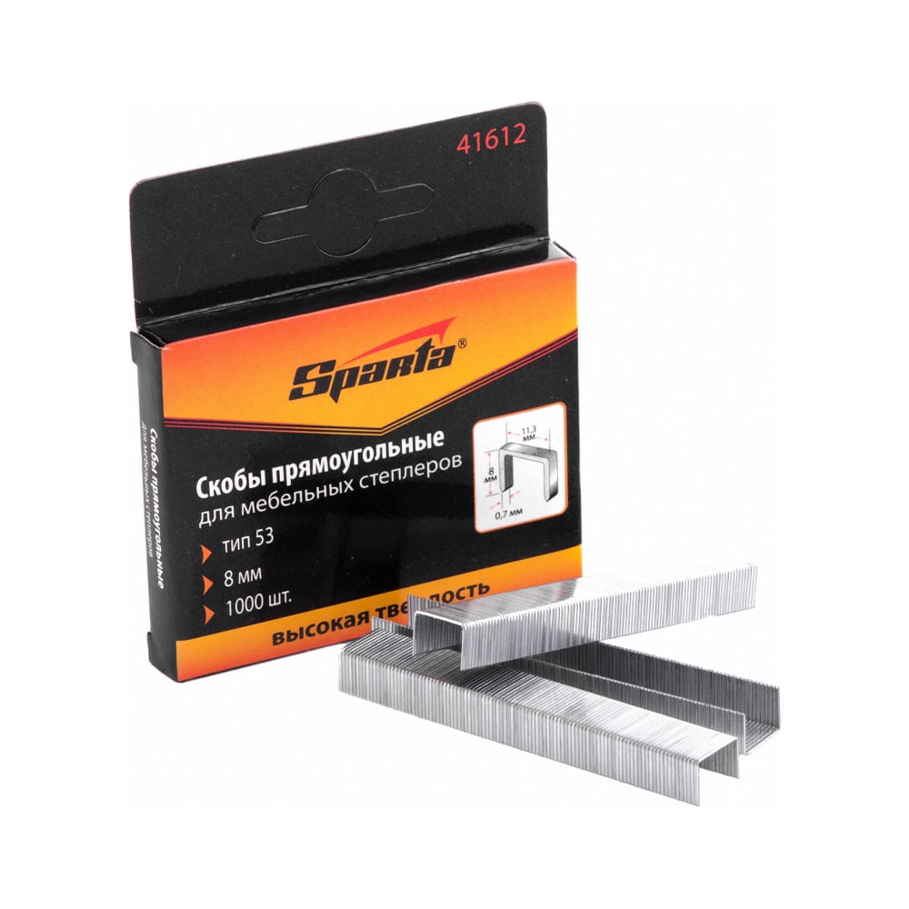 Скобы SPARTA 8 мм, для мебельного степлера, тип 53, 1000 шт. 41612