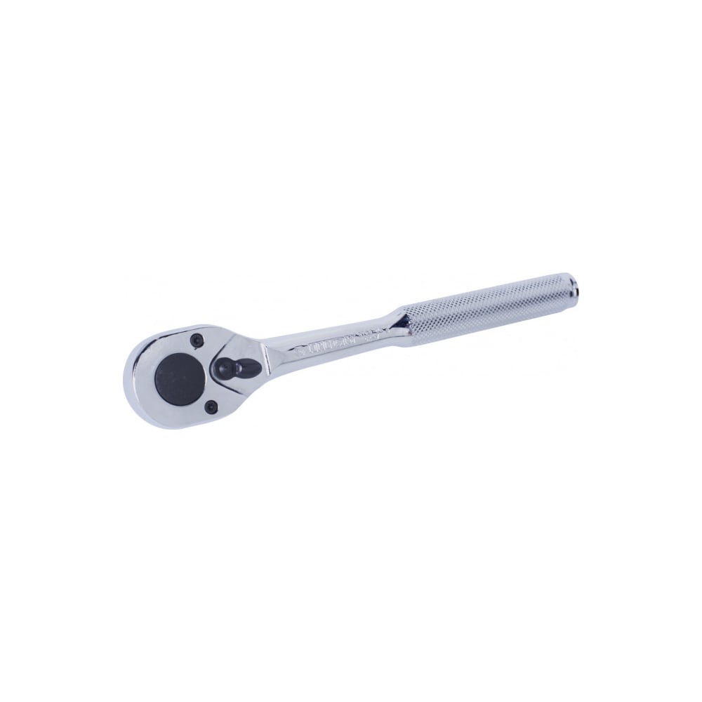 Длина 200 мм Материал сталь Покрытие хромирование Вид дюймовый Класс товара Профессиональный Вес нетто 0.36 кг Диэлектрическое покрытие нет Трещотка есть Количество зубьев 32 шт Посадочный квадрат 3/8 дюйма Шарнирный механизм нет Удлинитель нет