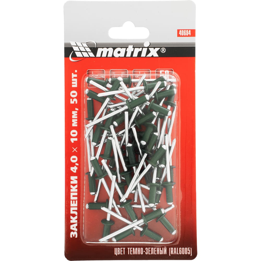 Заклепки RAL 6005 (4.0х10 мм; темно-зеленый) 50 шт. MATRIX 40684