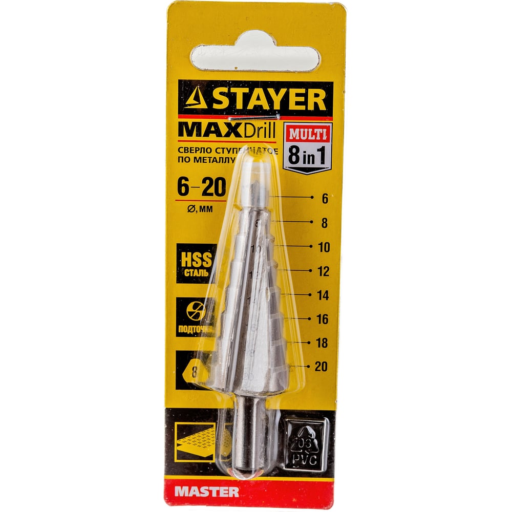 Ступенчатое сверло по сталям и цвет.мет STAYER MASTER 29660-6-20-8