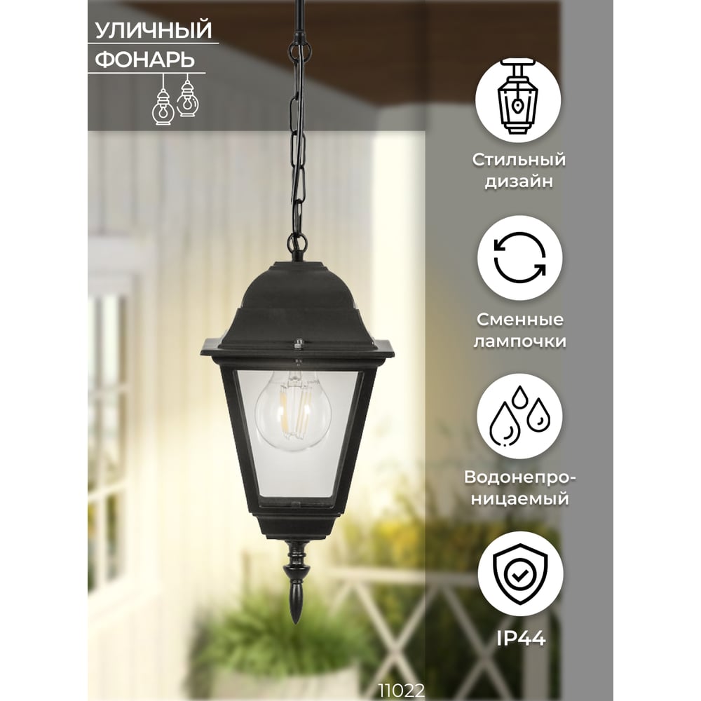 Садово-парковый светильник, четырехгранный на цепочке 60W E27 230V, черный FERON 4105 11022