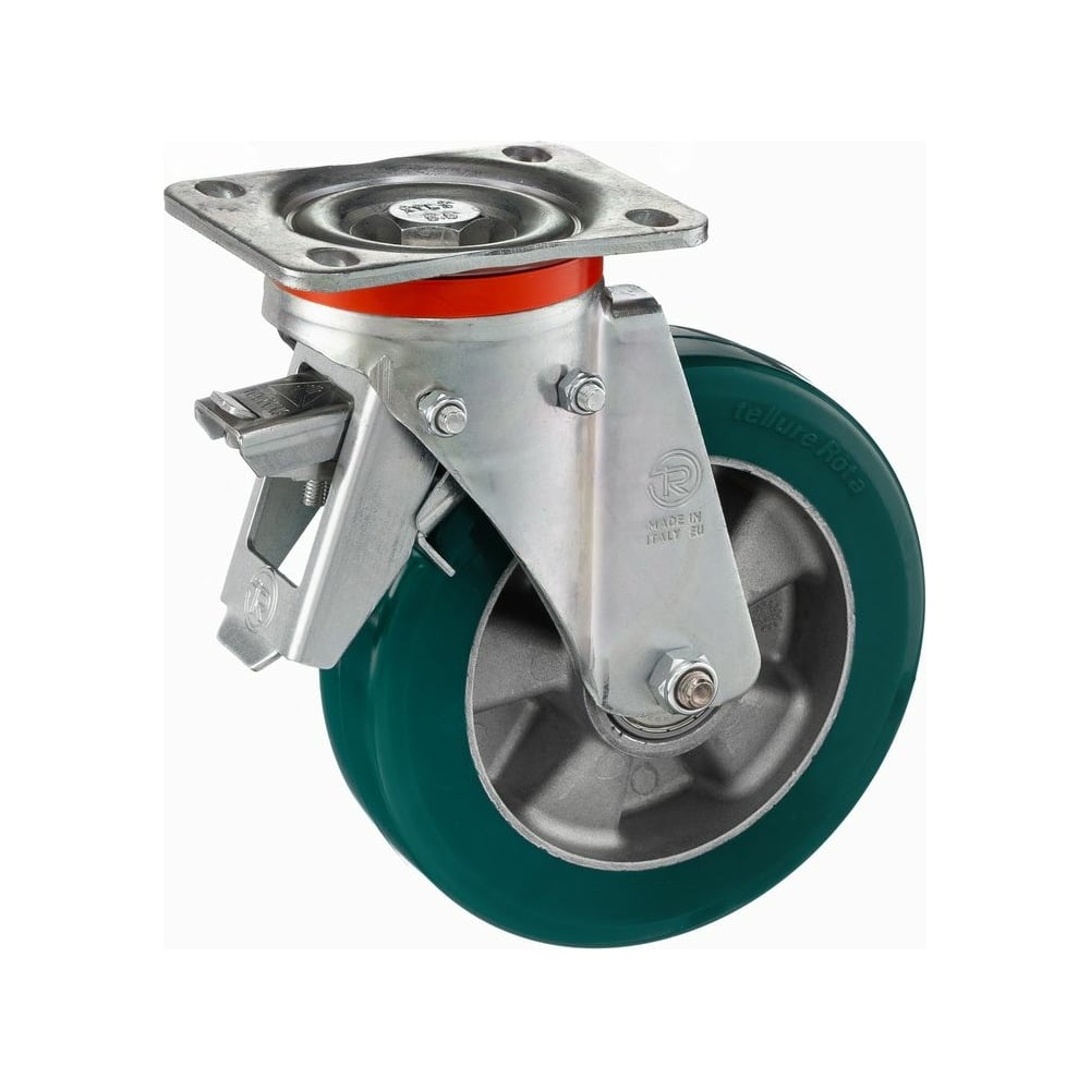 Колесо с вращающейся опорой, пластиной крепления и задним тормозом (200 мм; 700 кг) Tellure rota 627206
