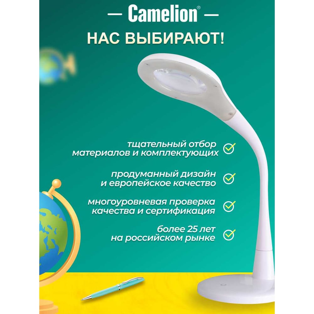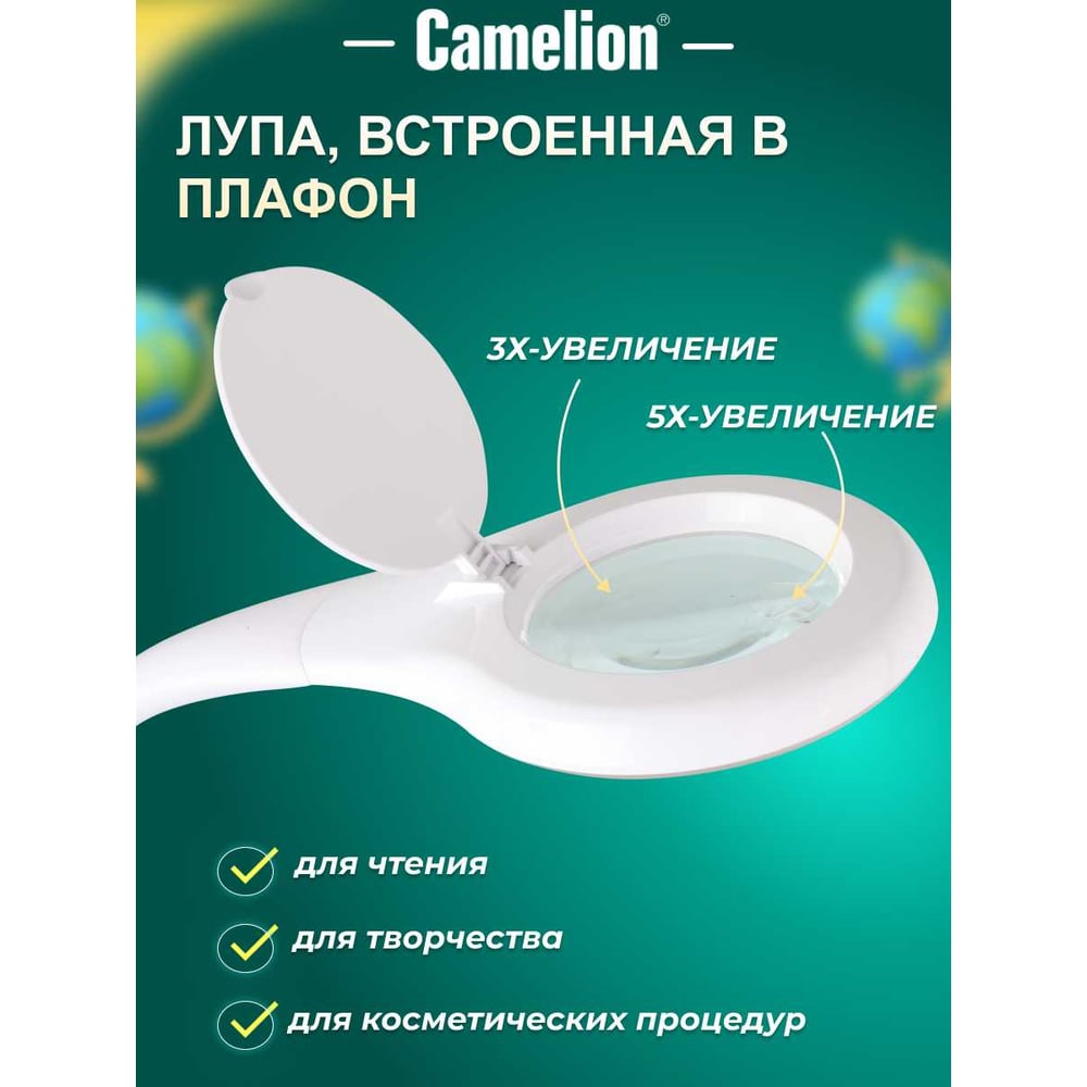 Настольный светильник, белый, LED, 7Вт, 230В, лупа 3х/5х, сенсорное включение, 4 уровня яркости, 4000К Camelion KD-790 C01 12484