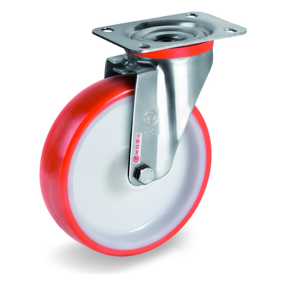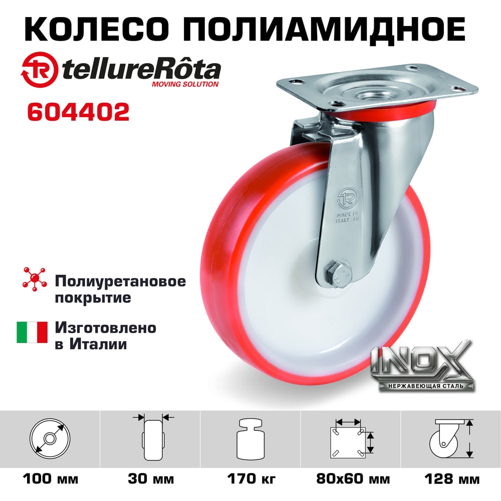 Колесо с нержавеющей вращающейся опорой и пластиной крепления (100 мм; 170 кг; INOX) Tellure rota 604402