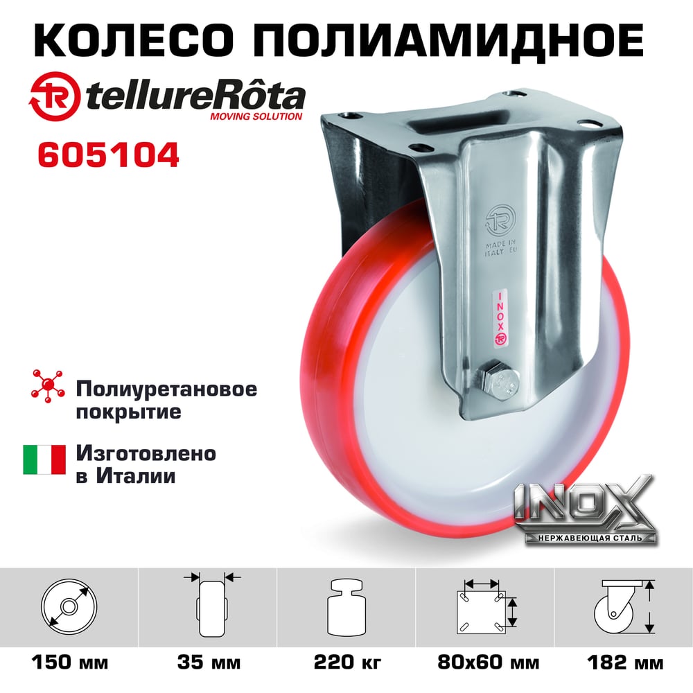 Колесо с нержавеющей стационарной опорой (150 мм; 220 кг; INOX) Tellure rota 605104