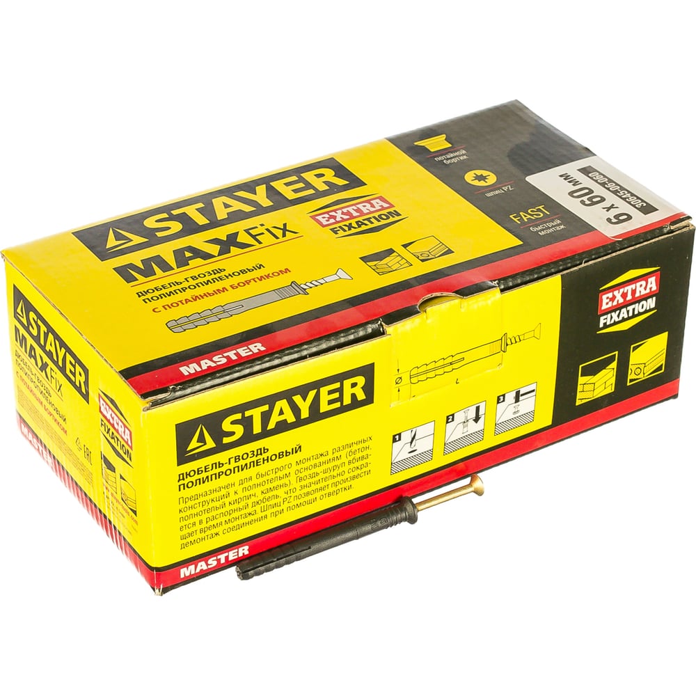 Полипропиленовый дюбель-гвоздь STAYER MASTER потайный бортик, 6x60 мм, 100 шт 30645-06-060