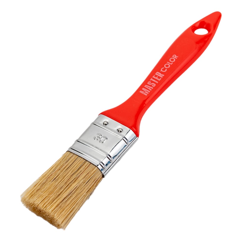 Флейцевая кисть, толщина 12мм, 70% ПБT / 30% светлая натуральная щетина, нержавеющий обжим, пластиковая ручка, ширина 30мм МASTER COLOR 30-0121