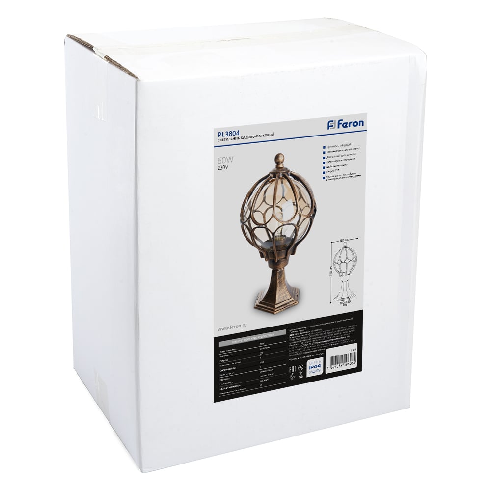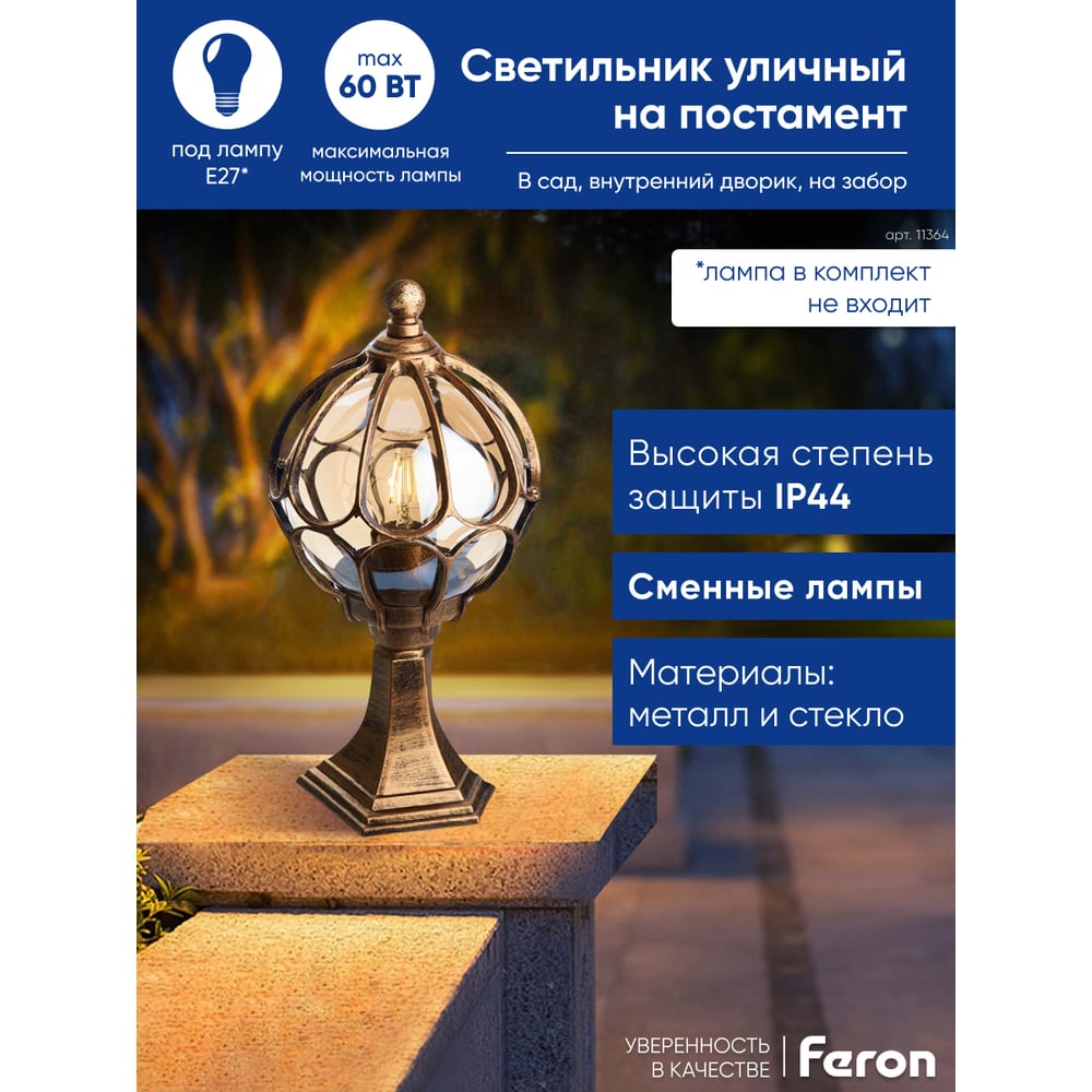 Садово-парковый светильник, круглый на постамент 60W 230V E27, черное золото FERON PL3704 11364