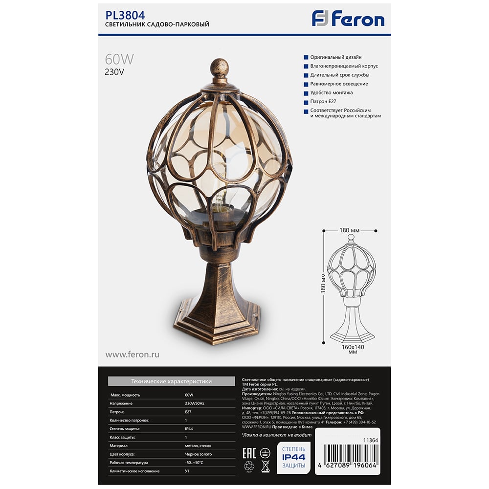 Садово-парковый светильник на постамент FERON PL3704 11364