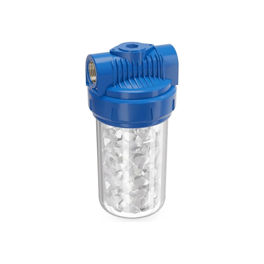 Вид магистральный для полифосфатной загрузки Класс товара Бытовой Вес нетто 0.3 кг Материал корпуса пластик Ионный обмен нет Мембранная очистка нет Механическая очистка нет Обезжелезивание нет Сорбционная очистка нет Умягчение да Фильтрация от солей жесткости Скорость фильтрации 13 л/мин Подходит для горячей воды нет Температура очищаемой воды 5-35 °С Тип сменного модуля полифосфат Max давление 5 бар Количество ступеней очистки 1 Комплект картриджей нет Подключение к водопроводу есть Диаметр соединения 1/2 дюйм