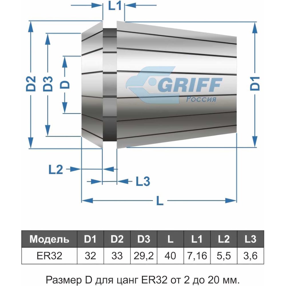 Цанга ER32 (10х40х33 мм; DIN6499) GRIFF b225078