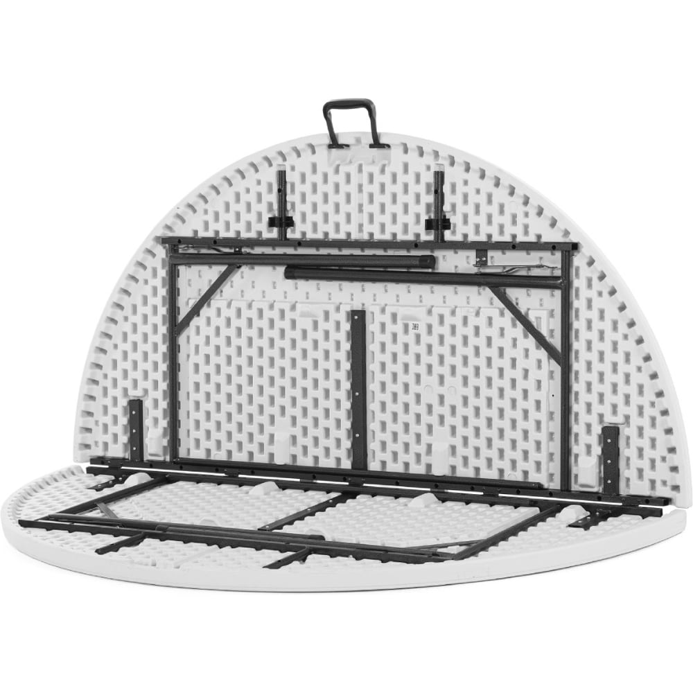 Высота 740 мм Длина 1600 мм Покрытие пластик HDPE Ширина 1600 мм Цвет белый Форма круг Назначение для кемпинга Материал столешницы пластик Водонепроницаемость нет Материал каркаса сталь Габариты в разложенном виде 1600х1600х740 мм Количество мест 6-8 Габариты в сложенном виде 1600х800х90 мм Стол-чемодан да Наличие сиденья нет
