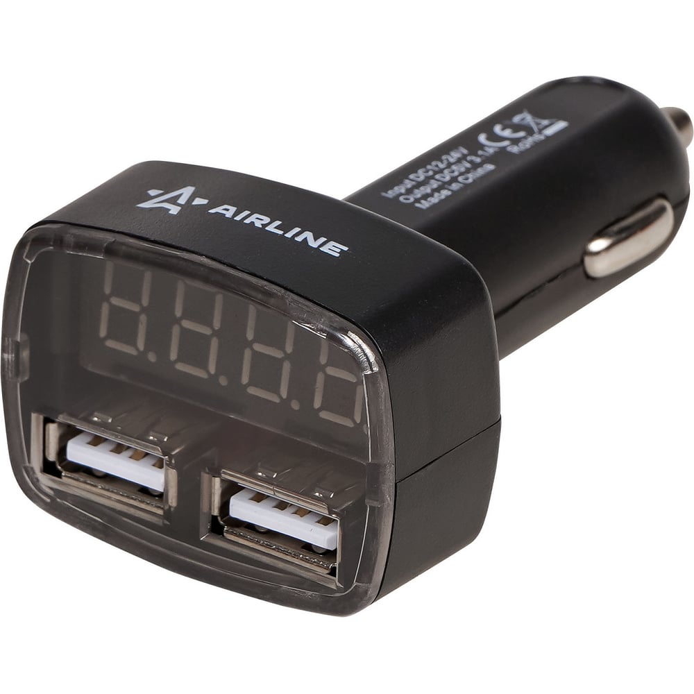 Вольтметр Airline + 2USB 3.1A в прикуриватель AVM-D-02