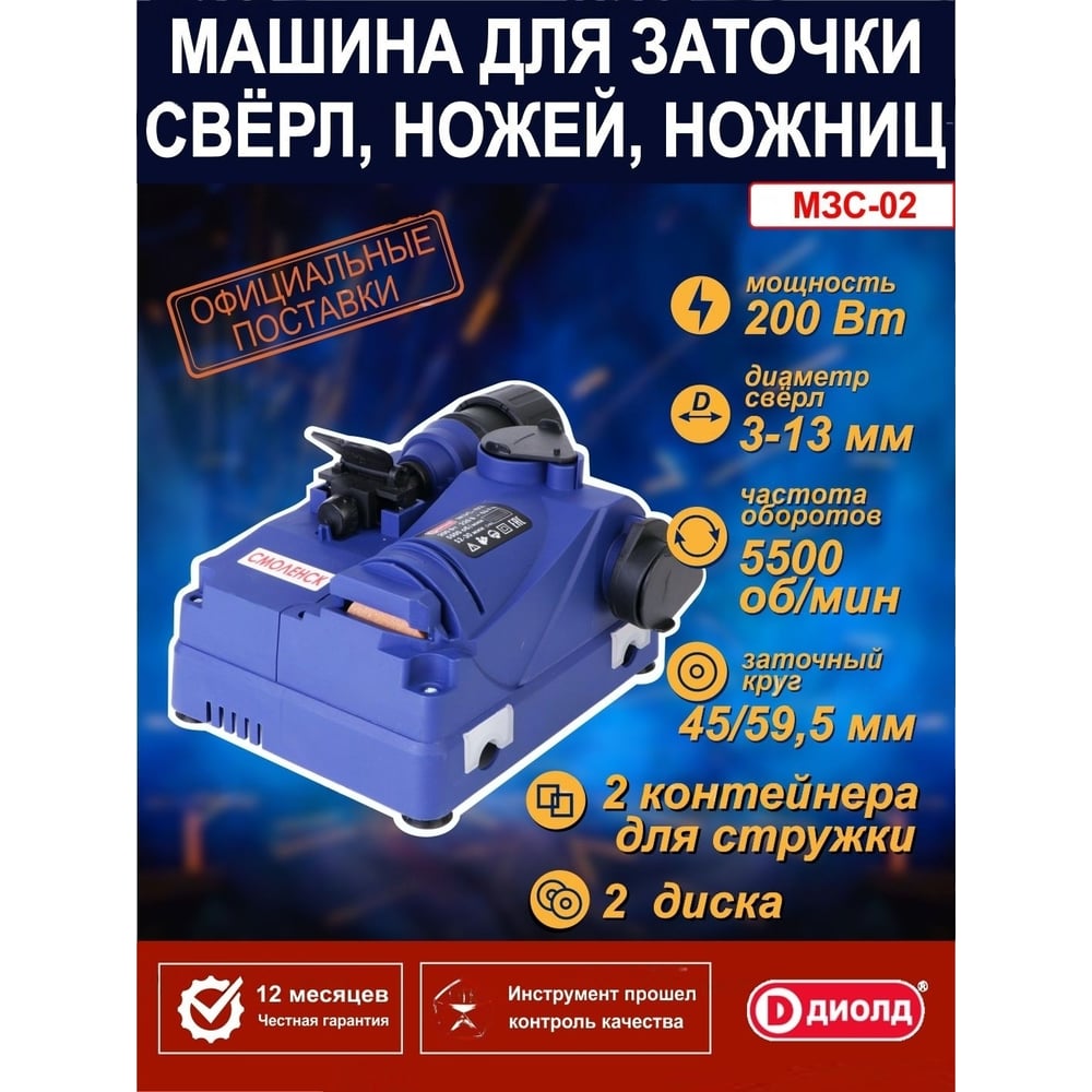 | Диаметр затачиваемых сверл | 3-13 мм |