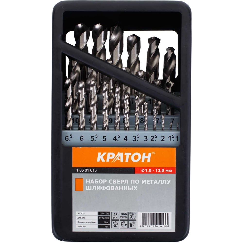 Набор сверл по металлу 1,0-13,0мм 25шт, белые, металлическая коробка, Кратон 1 05 01 015
