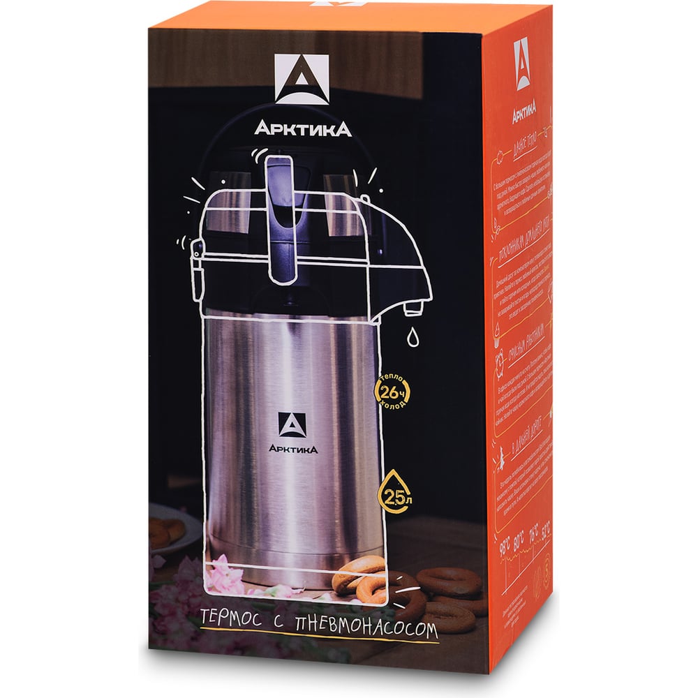 Настольный термос Арктика 2.5 л, с пневмонасосом, стальной 501-2500