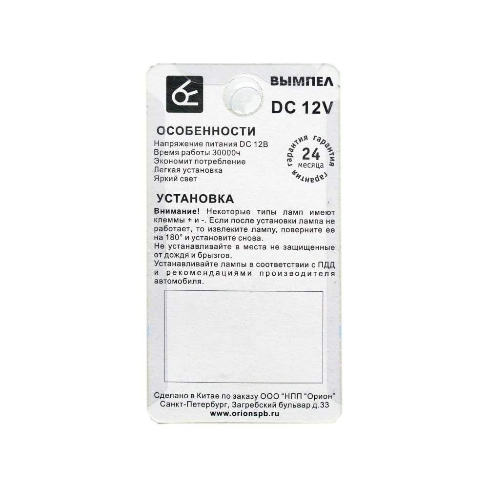 Автомобильная лампочка Вымпел T10-W5W 1SMD 5123